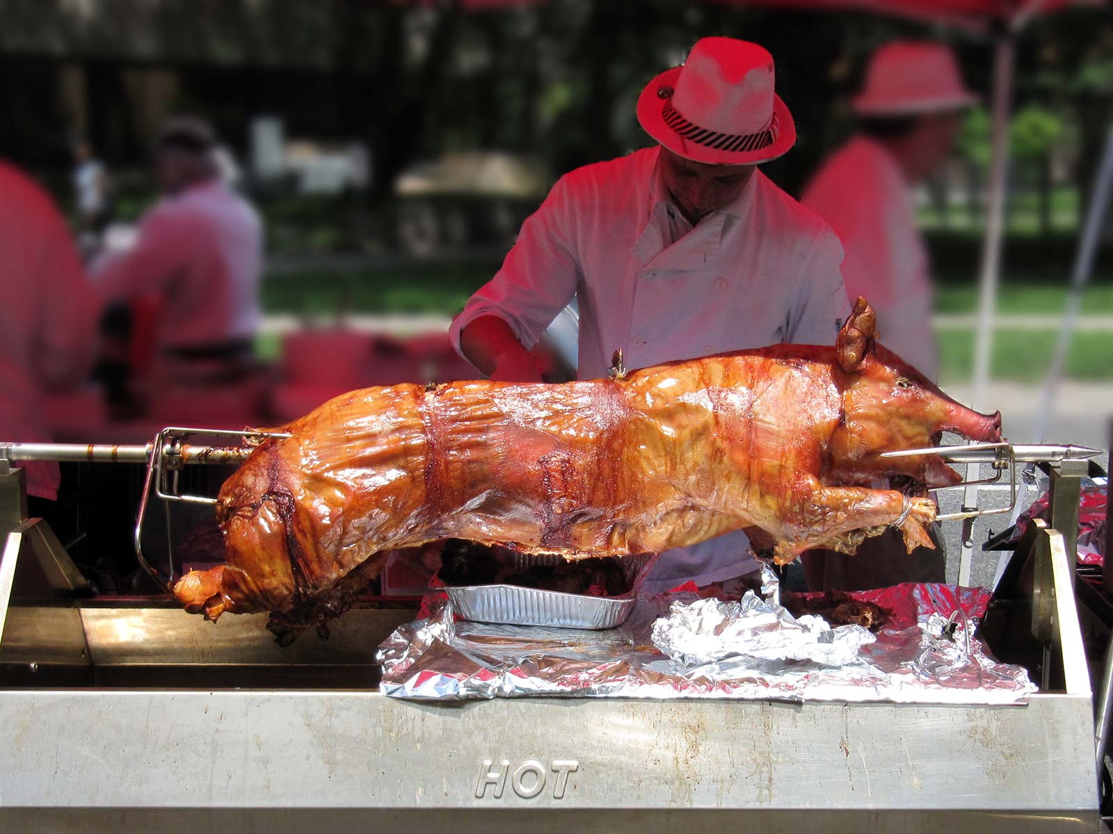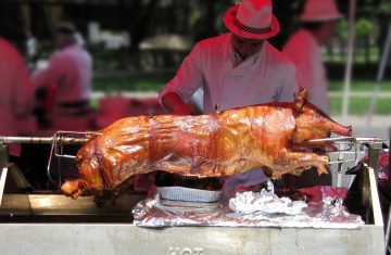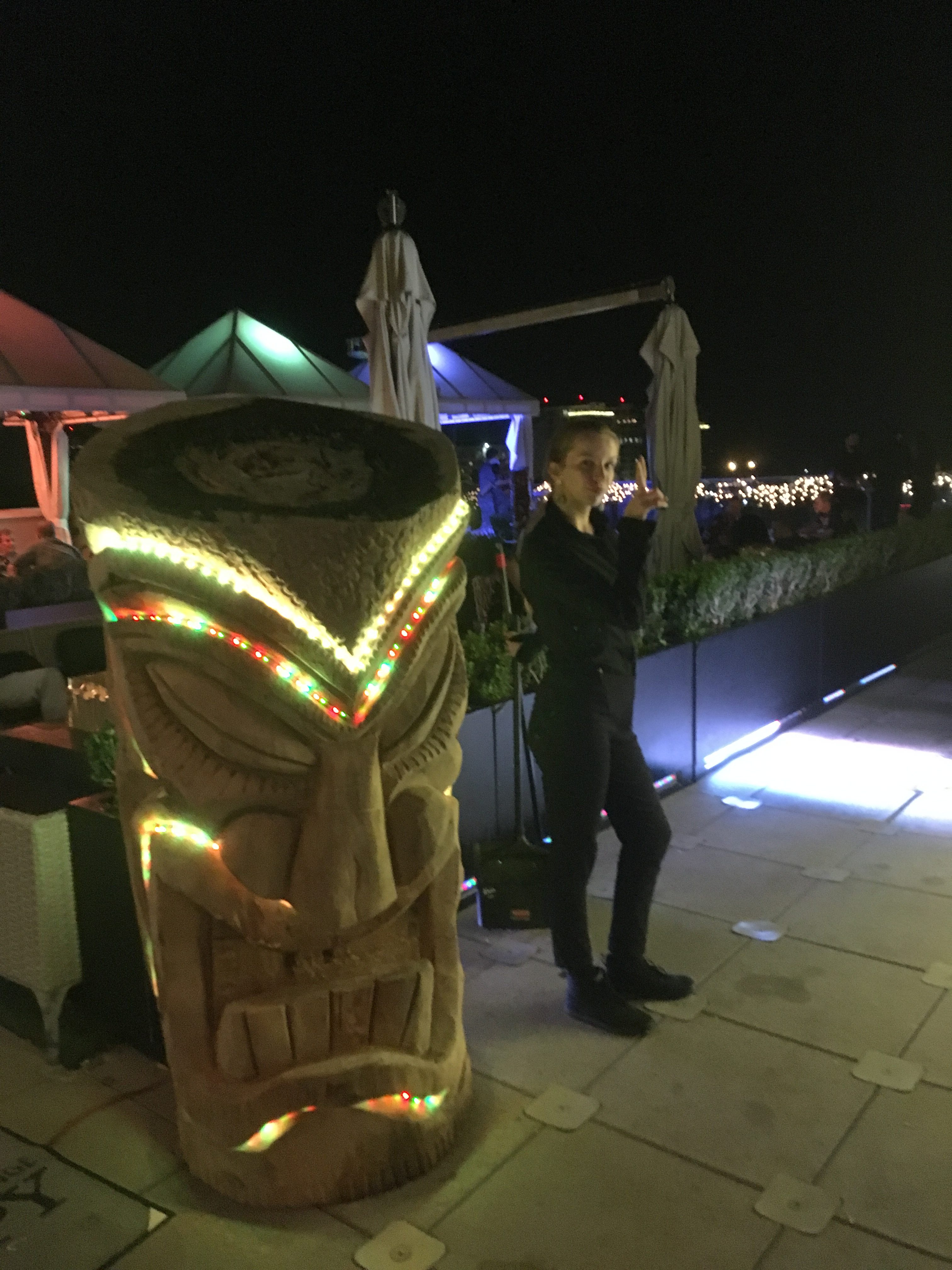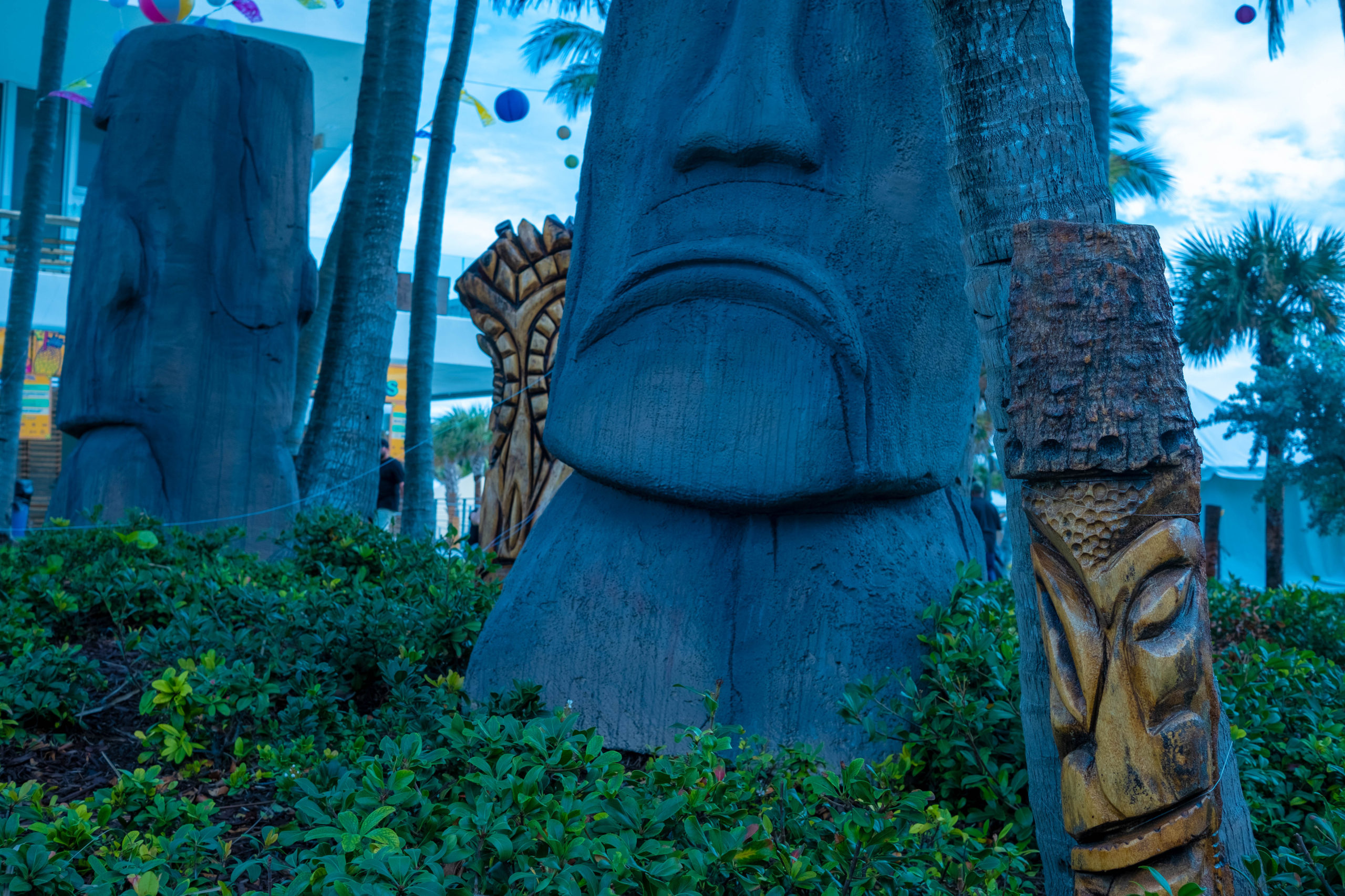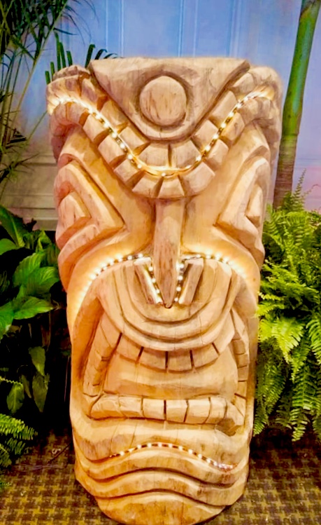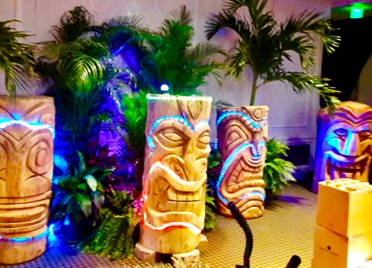 Exotic buffet tables Monster tiki keg holders Bamboo arches Tiki stairs up to stages 100-200 lb pig on a spit Fish fry Sound system Custom tiki carvings (names or logos)