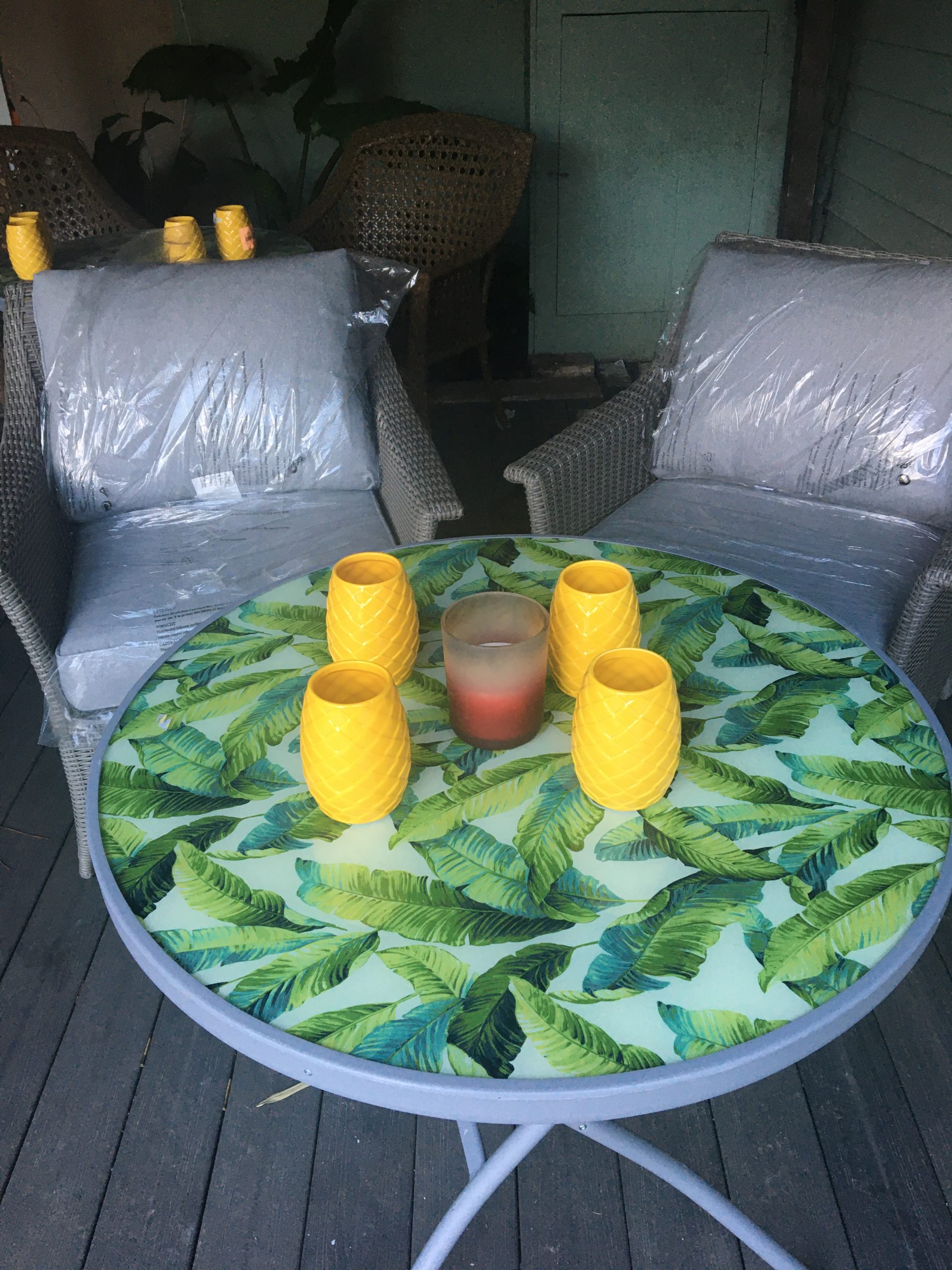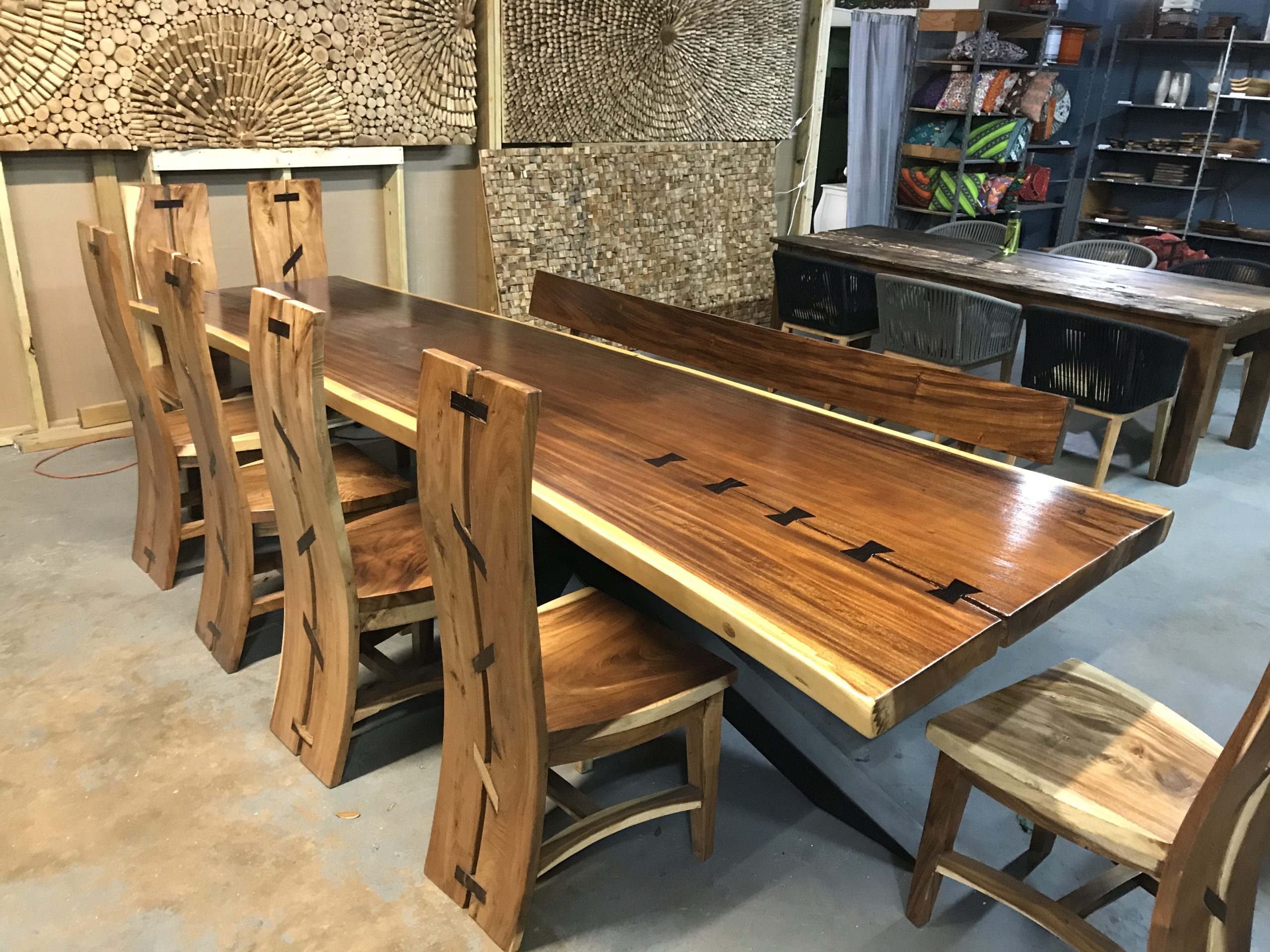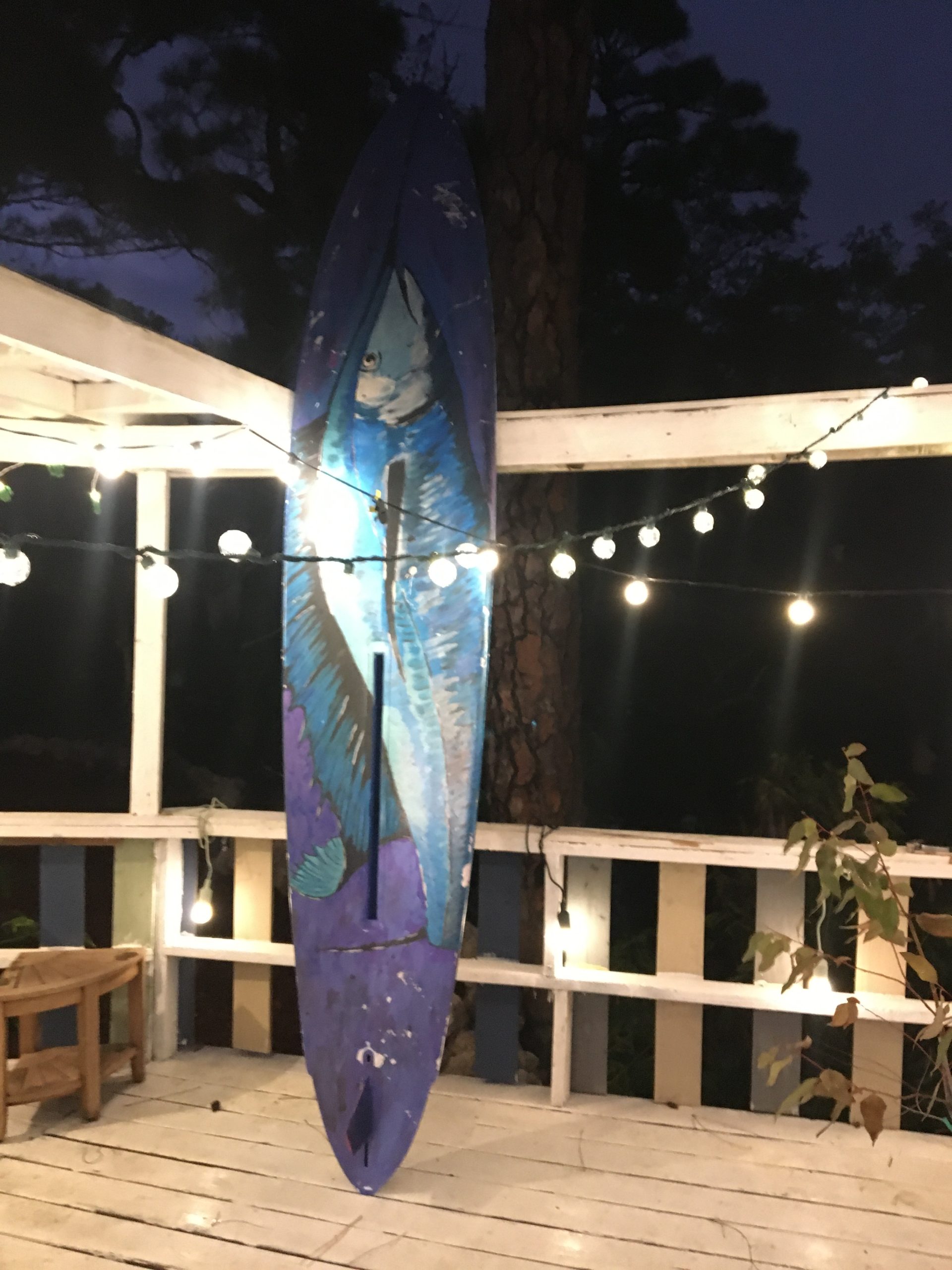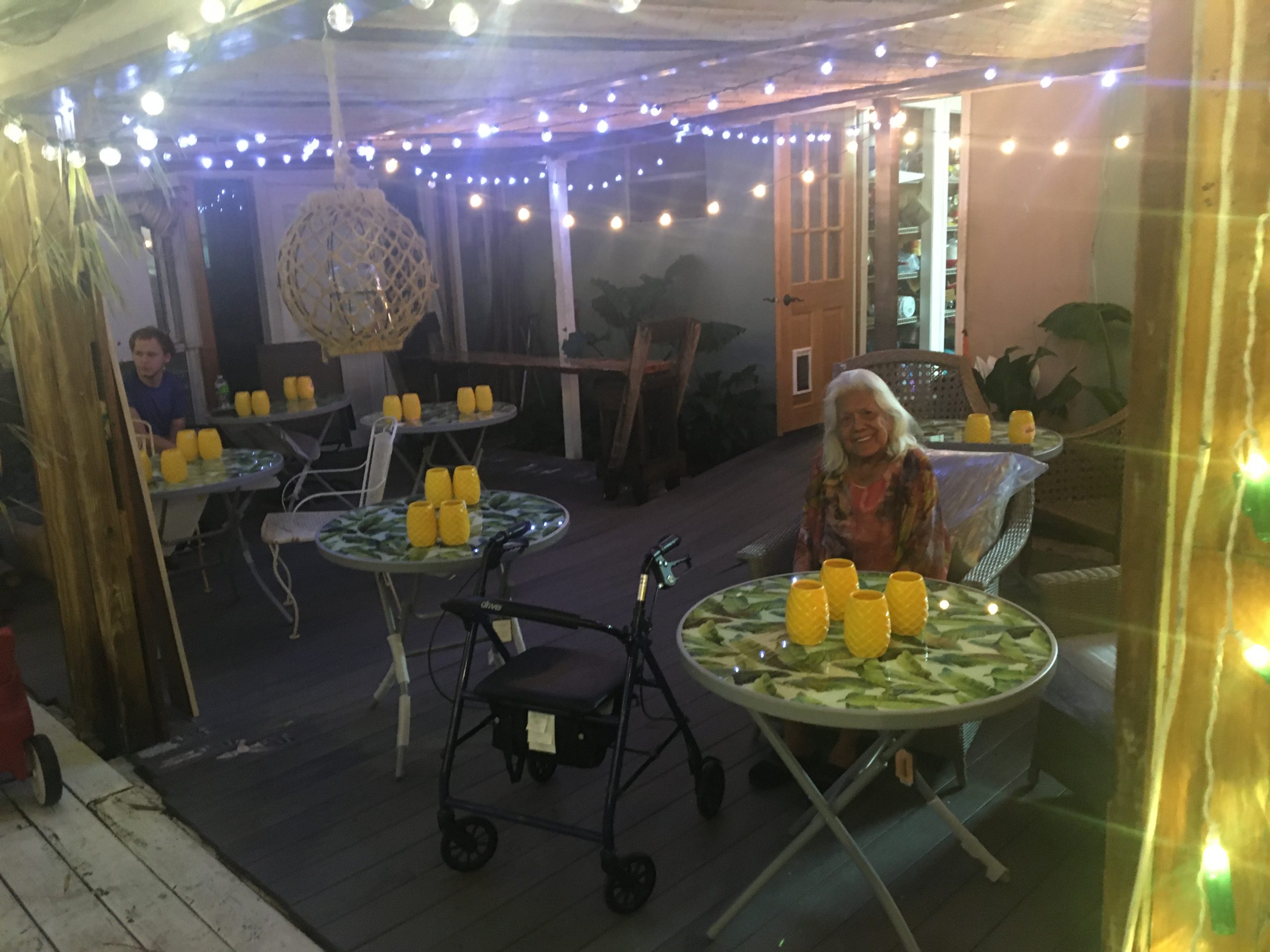 Six floral Tables glass tops 40, Pinapple glasses, as many exotic wood tables as needed, 2 sail boards painted with oceanic Art, up to 40 Tiki’s varying heights 3 feet in to 4 feet also 6 to 10 very large Tiki‘s, multiple Tiki Bars utilizing Tikis‘s as bases and exotic wood tops with bamboo facials, and pre-built Tiki huts which provide shade coverage different sizes available, as well as Thatch they could be mounted on existing structures for The Polynesian look, string lighting and battery lighting for areas without electricity and Tiki torches.